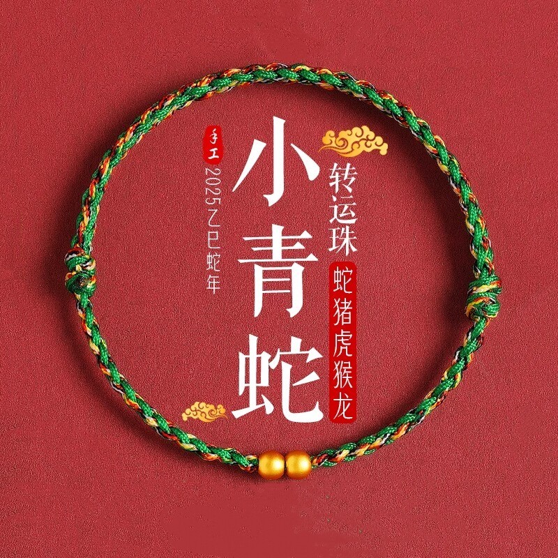Putuo Mountain 2026 Year of the Horse 999 Pure Gold Natal Year Red Rope Bracelet Women's Gold Transfer Bead Green Woven Bracelet