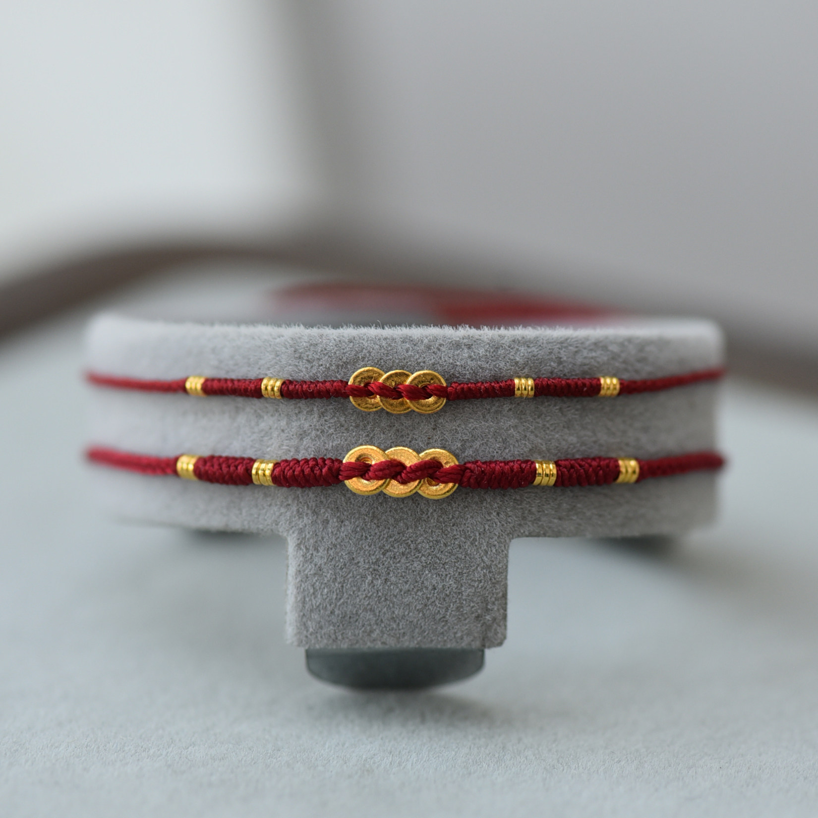 Three lives and three generations 999 pure gold gold transfer beads red rope bracelet male and female couples in the birth year hand-woven bracelet