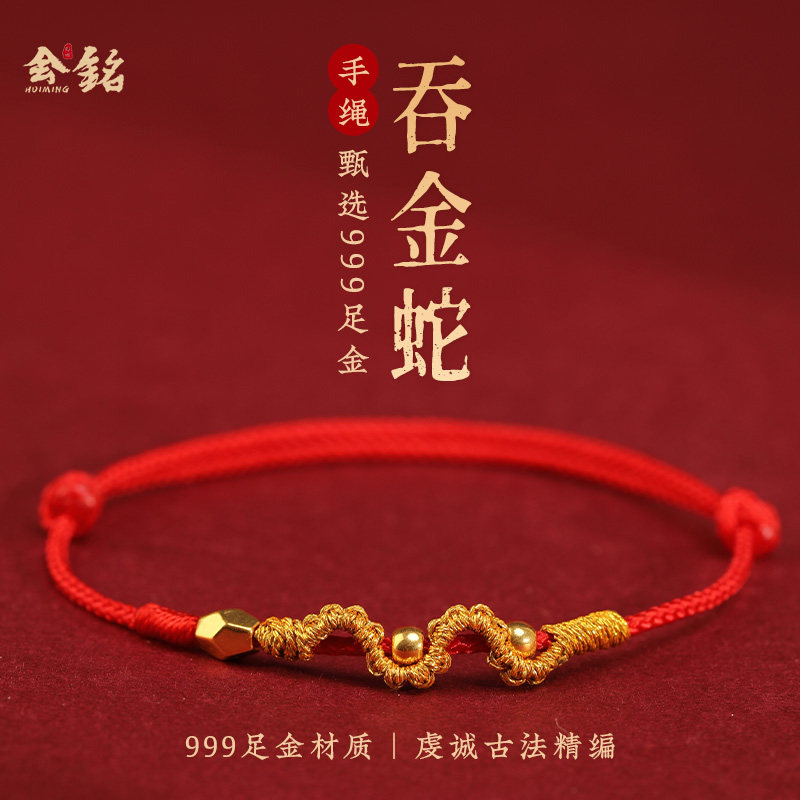 999 pure gold gold transfer beads red rope bracelet ankle bracelet for men and women Snake natal year peace and health woven bracelets