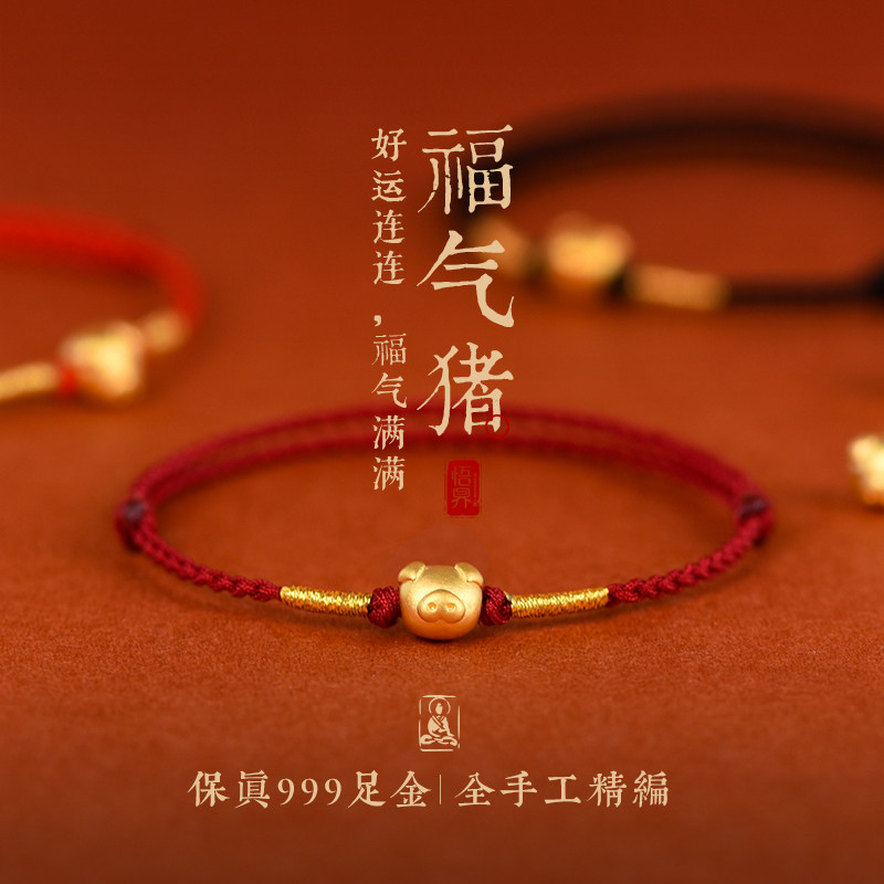 Original couple bracelet gold little golden pig zodiac red rope for men and women, a couple of good luck bracelets, niche anklets