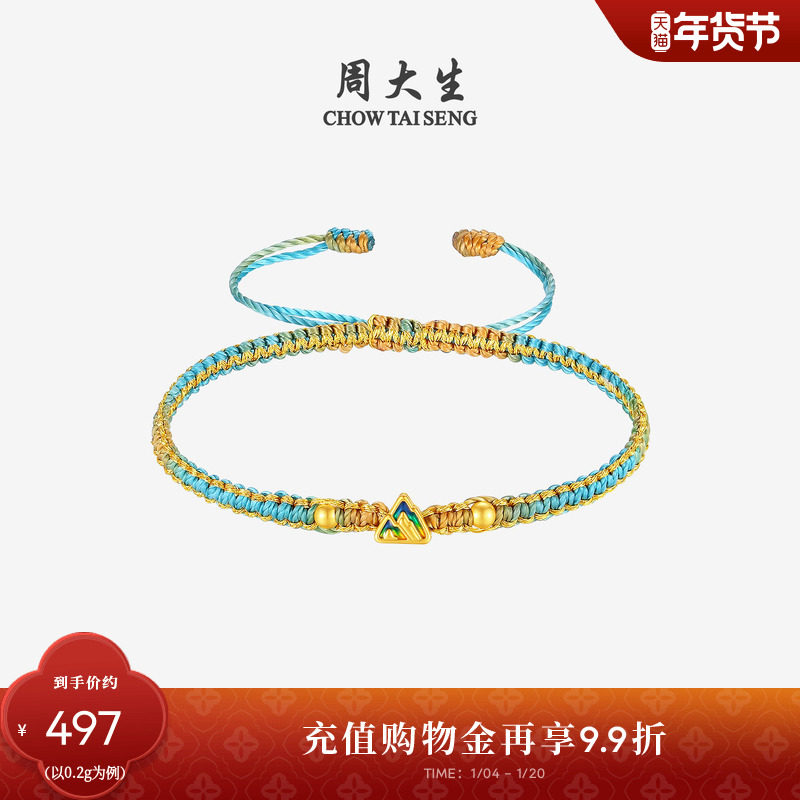 Chow Tai Sheng gold couple bracelet men's and women's foot gold hard gold thousands of miles of rivers and mountains splendid Weiyang bracelet New Year's gift