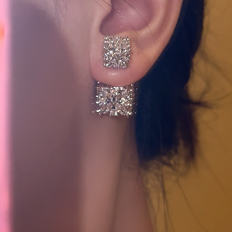 Light luxury simple atmosphere Ray Dean crushed ice cut 925 silver stud inlaid with high-carbon diamond fat rectangular temperament versatile woman