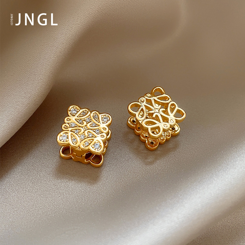 Korean stud earrings women's 2025 new explosive hollow geometric diamond earrings niche design high-end gold earrings