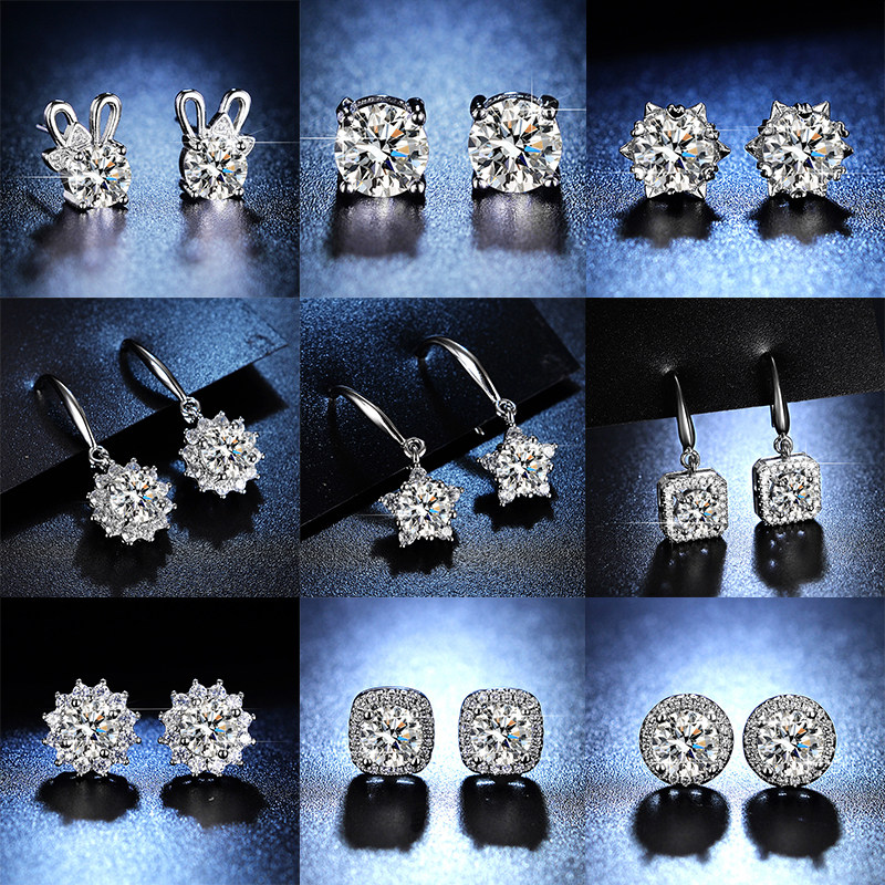 999 sterling silver stud earrings women's ear piercing ear bone studs niche high-end zircon cochlear nail rhinestone earrings silver earrings