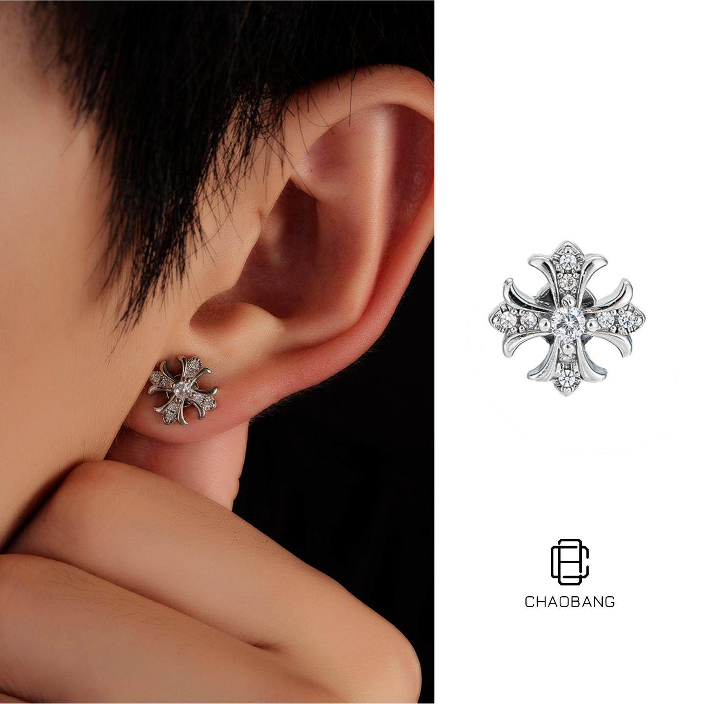 2025 new explosive high-end men's stud cross retro pocket drill without ear piercing magnetic earrings for men and women