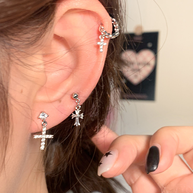 Dudu couple unique cross super flash stud earrings for female doctor titanium steel cochlear studs hypoallergenic ear piercing ear bone ring