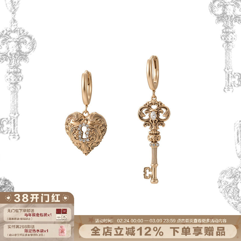 SUMIYAKI love lock cylinder series autumn and winter American retro style key love earrings slimming big earring women