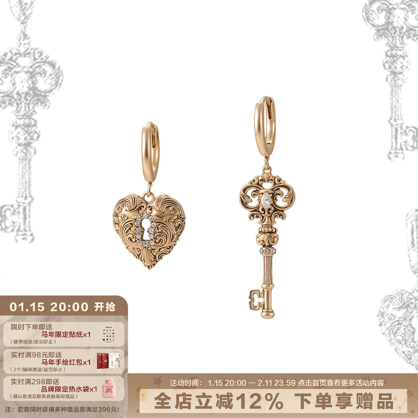 SUMIYAKI Vintage Love Lock Cylinder Series Asymmetrical Key Earrings Love Earrings Women's Ear Clips No Ear Piercings