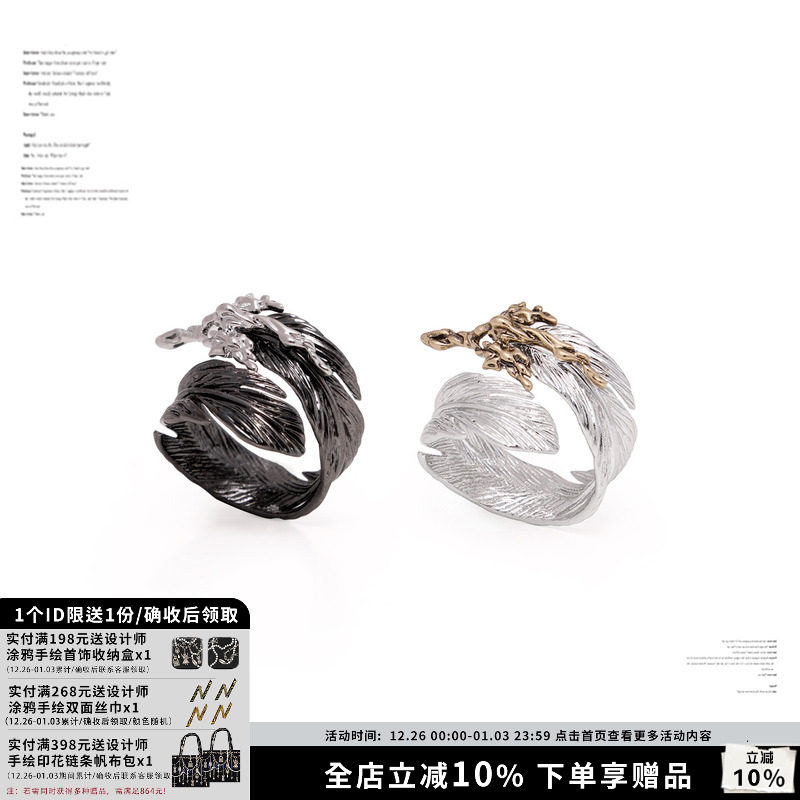 [Star Same Style] Feather series niche high-end ring women's liquid metal light luxury ring couple gift
