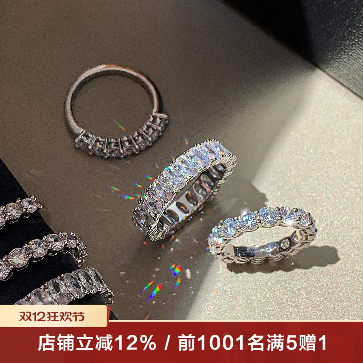 Fire color flash row diamond zircon silver index finger full diamond ring women's 2025 new niche design light luxury high-end sense