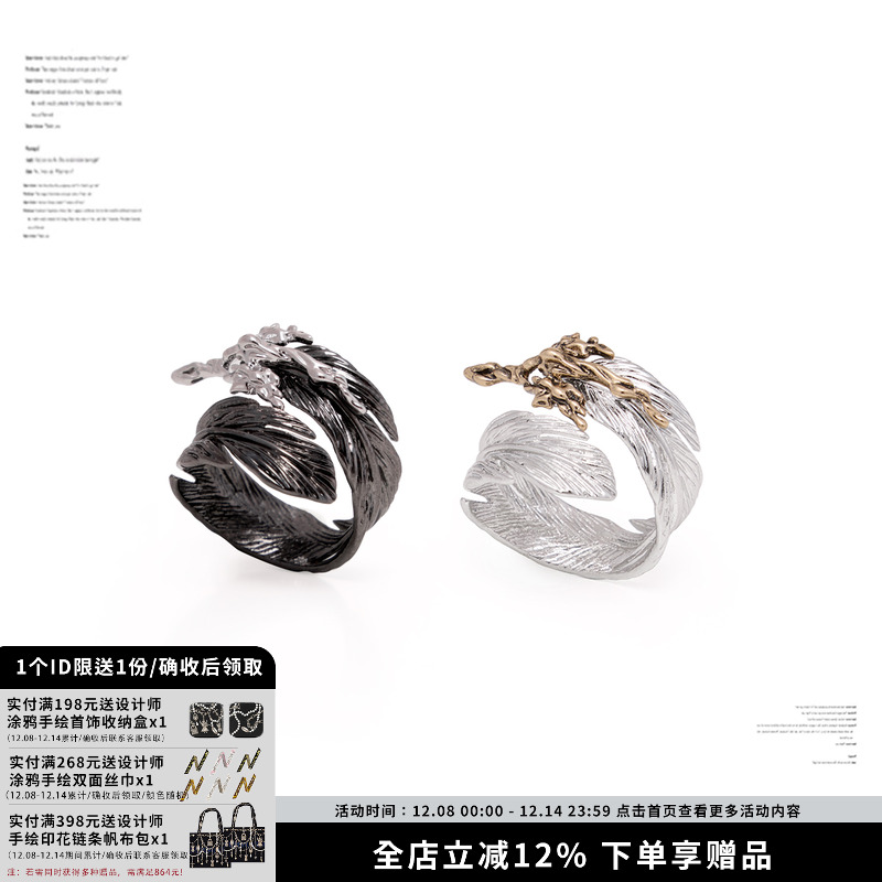 [Star Same Style] Feather series niche high-end ring women's liquid metal light luxury ring couple gift