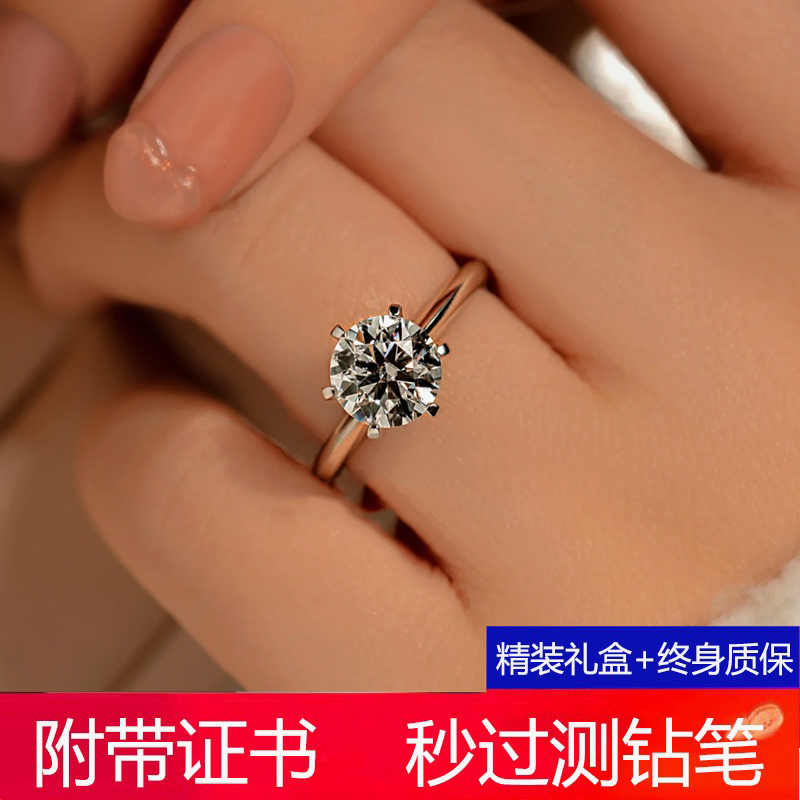 Moissanite diamond ring women's one carat 50 points classic six-claw engagement sterling silver ring for girlfriend wife gift
