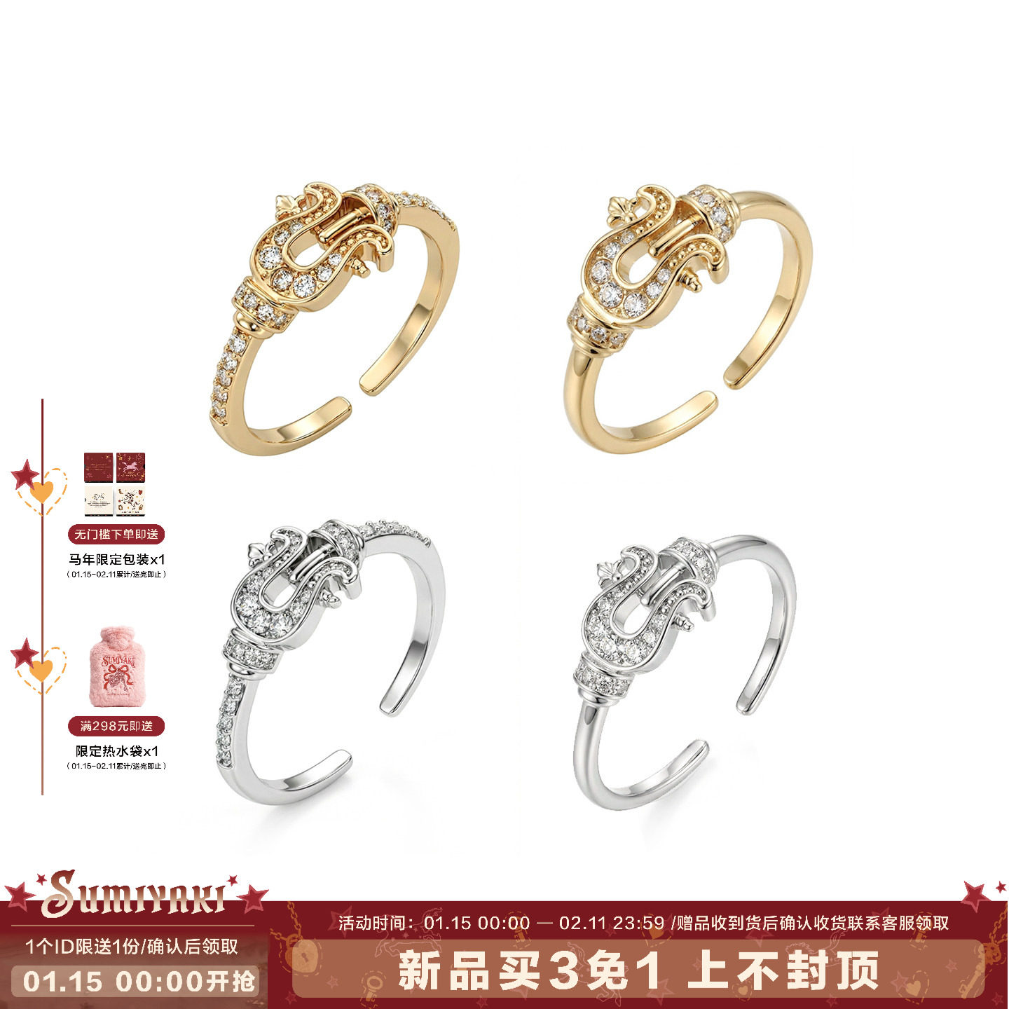 SUMIYAKI Year of the Horse series horseshoe buckle simple ring light luxury high-end diamond-set natal year couple New Year's gift