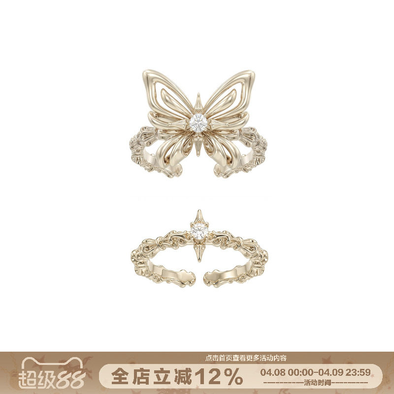 LEMON Mangxing Moonlight Cat's Eye Ring Women's Triopiece Set Niche Design Personality Irregular Opening Accessories Trendy