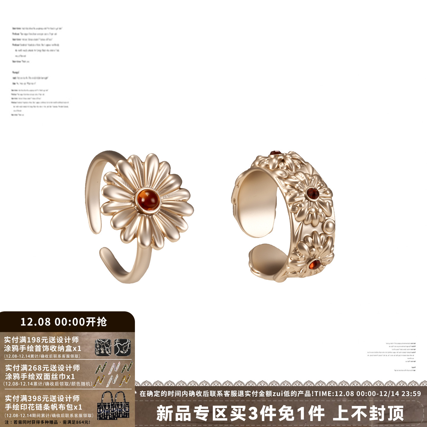 SUMIYAKI Daisy Series French Vintage Ring Opening is adjustable
