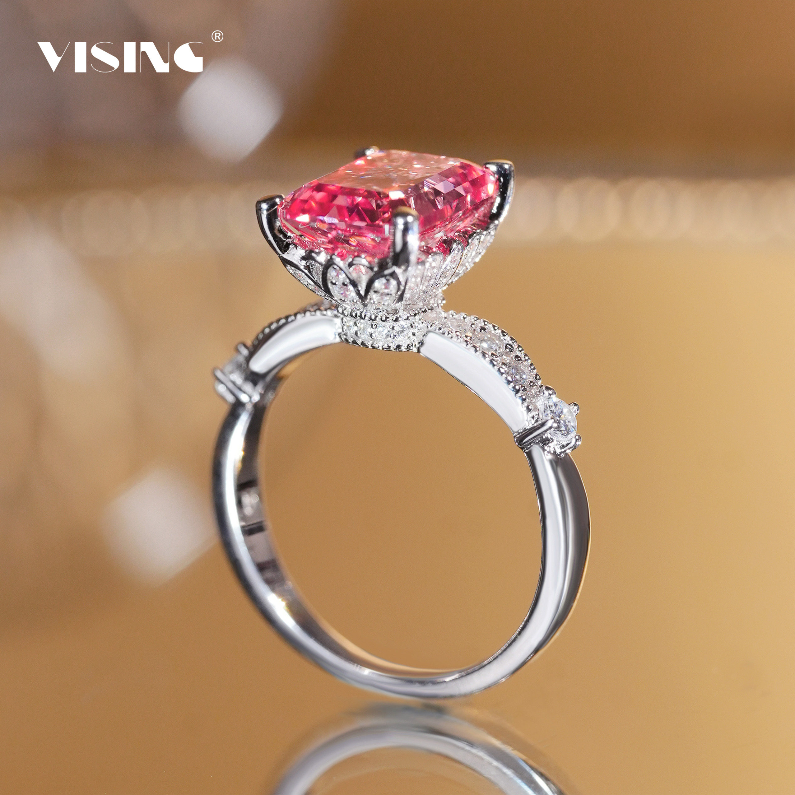 VISING Jewelry Lab Grown Sapphire Paparacha 4.3 Carat Ring Pink Gemstone Pink Diamond