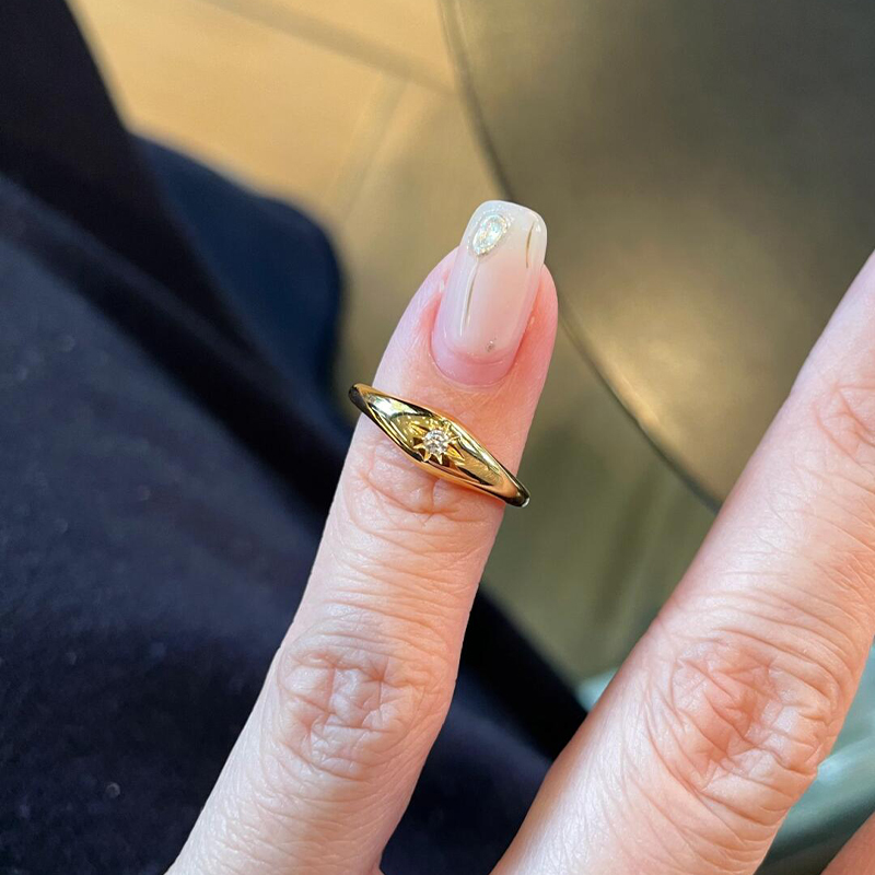 Light luxury six-pointed star compass, moissanite sterling silver tail ring, little finger, little finger, small size ring, very small size 2 size 3