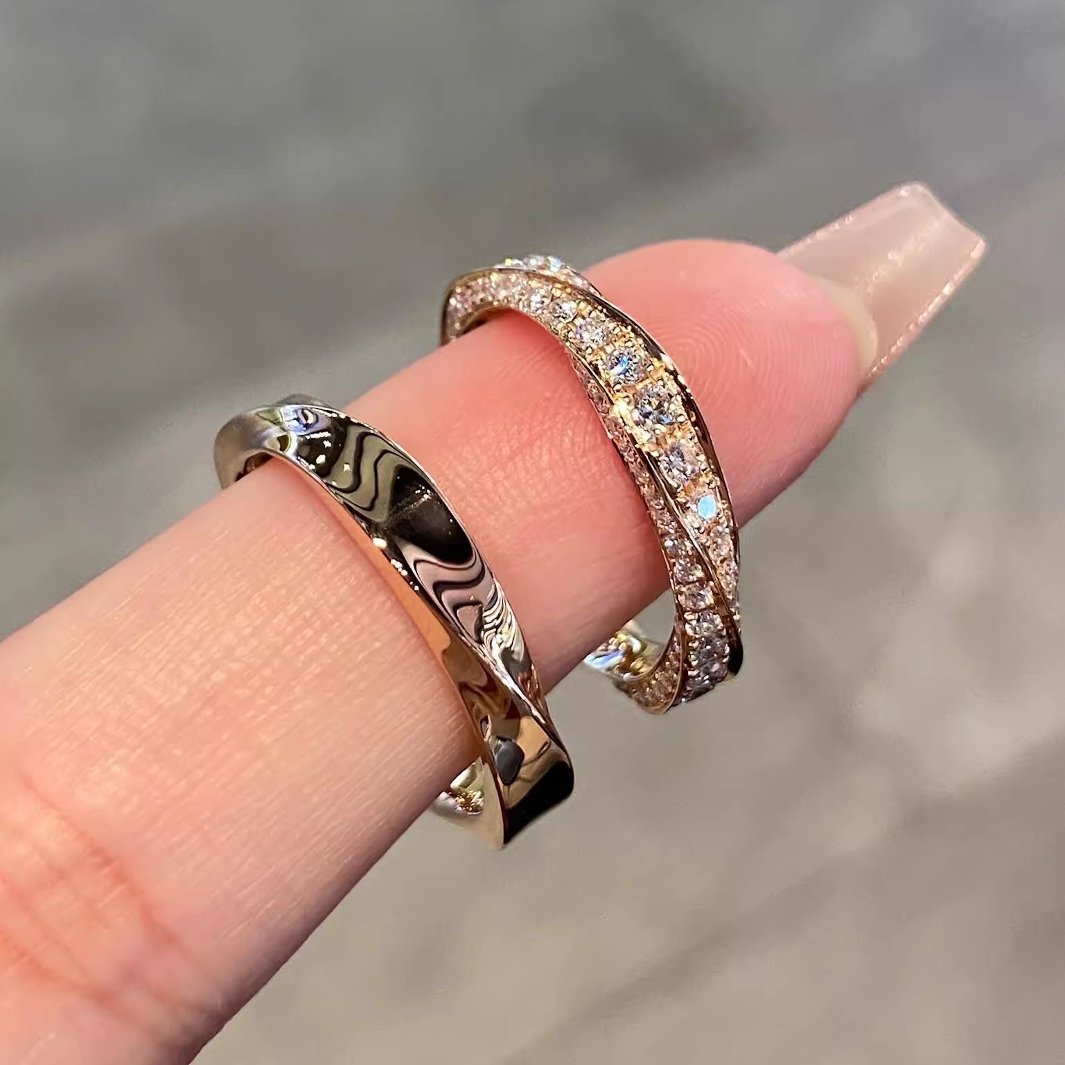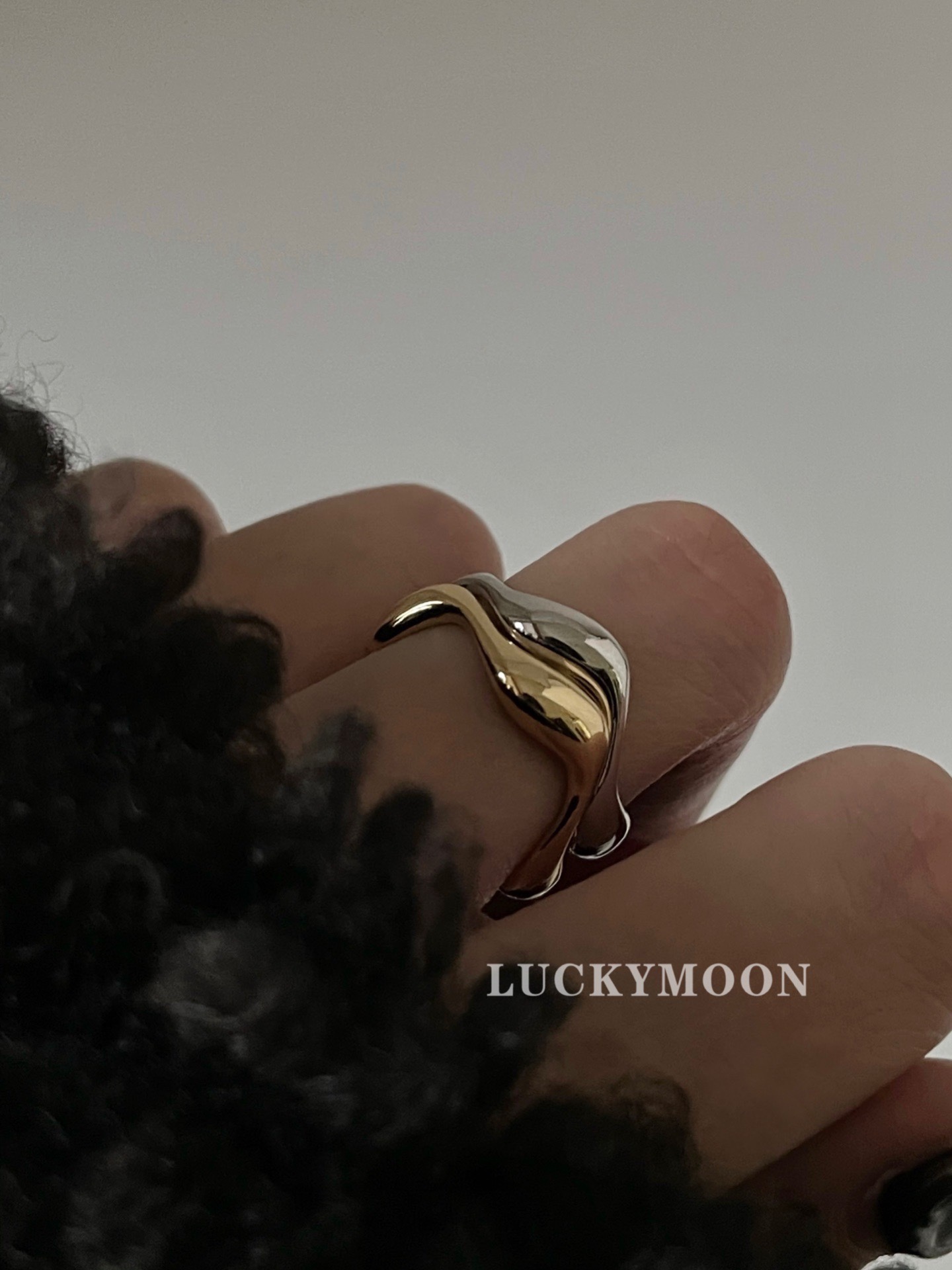 LUCKYMOON Tanabata Gift Wave Curve Sterling Silver Ring s925 Gold Silver R047