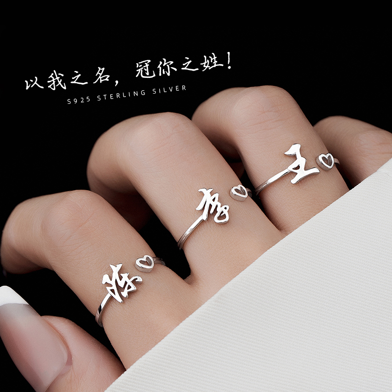 Jinmeiao Baijia surname sterling silver ring female high-end niche couple ring index finger 2025 new explosive model