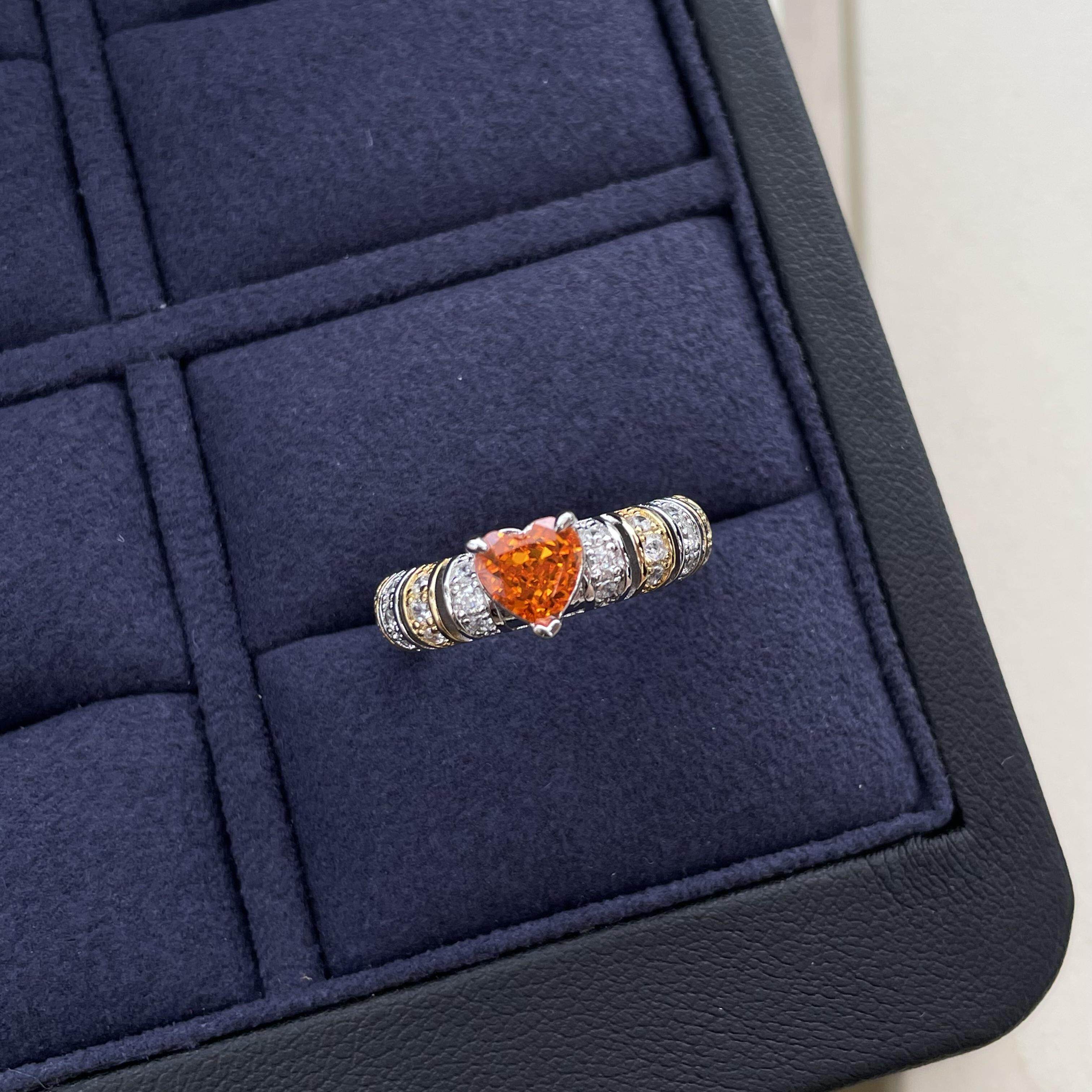 1.8ct heart-shaped Fanta stone S925 sterling silver ring 6*7 ice flower cut artificial colored gemstone high-end design jewelry