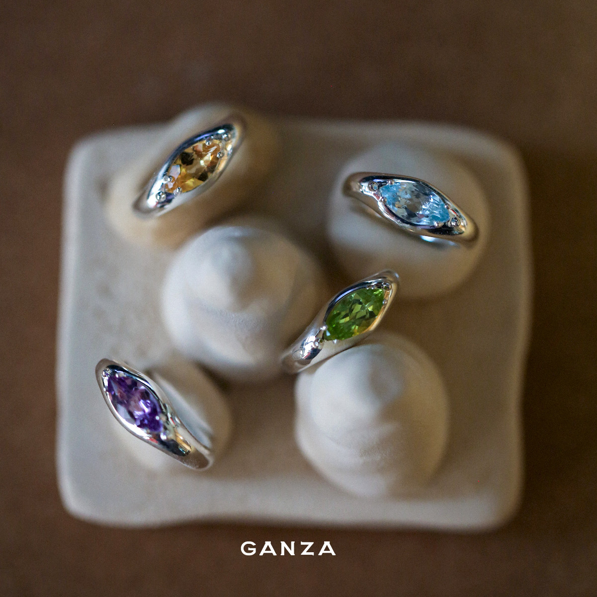 GANZA original marquise crystal colored gemstone silver ring female niche temperament marquise shape S925 silver ring