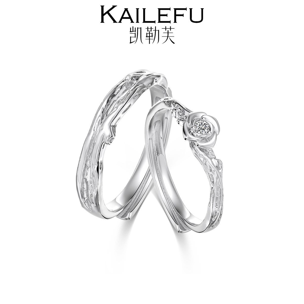 Calef wood and branch couple ring S925 silver ring light luxury high-end open ring openwork rose design