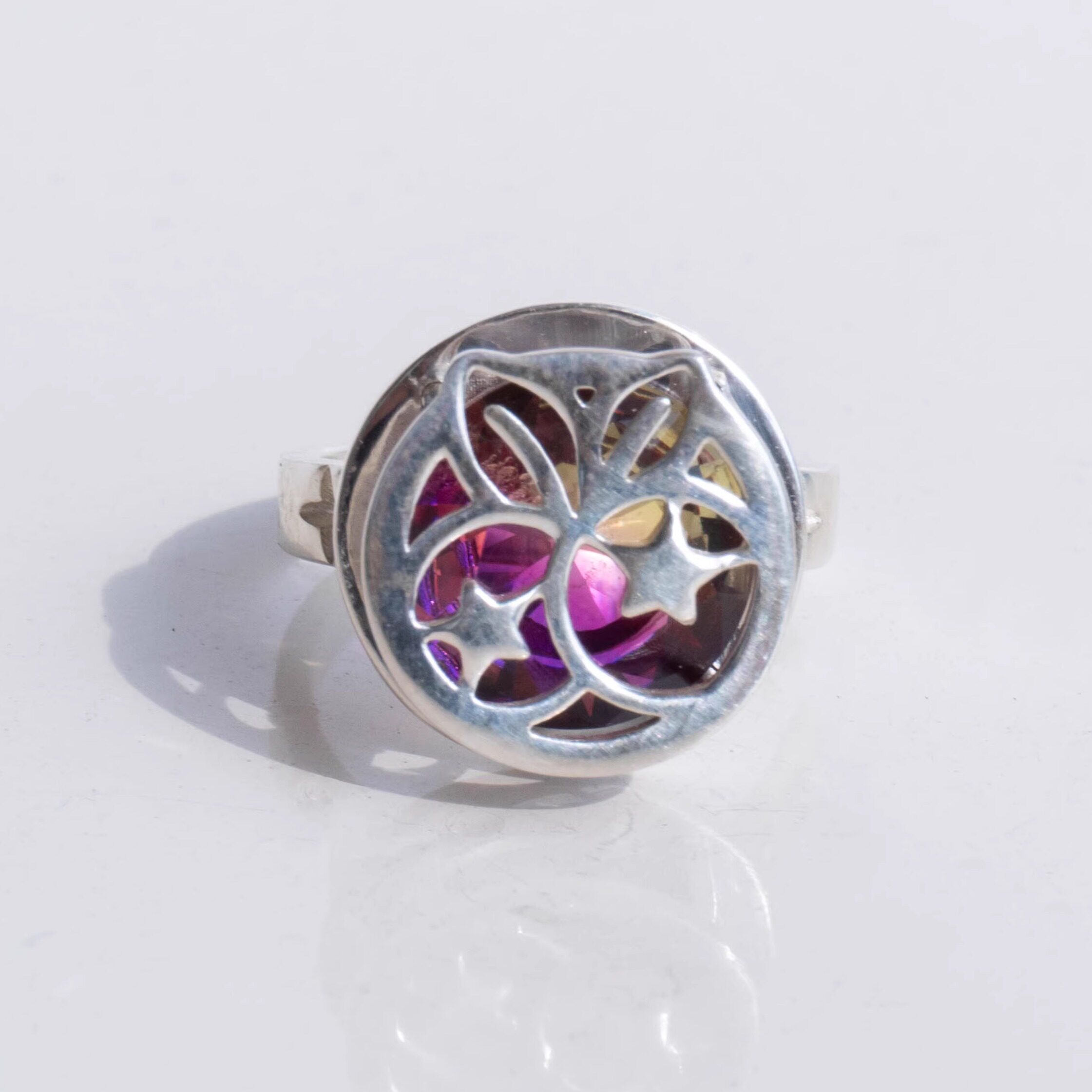 Electronic sugar department "fruit hard candy" blueberry ring green purple gradient synthetic tourmaline 925 silver anti-sweet niche