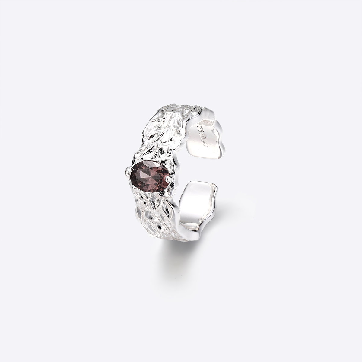 Urbane Ease original [Ember Branding] lava texture 925 sterling silver niche high-end opening ring for men and women