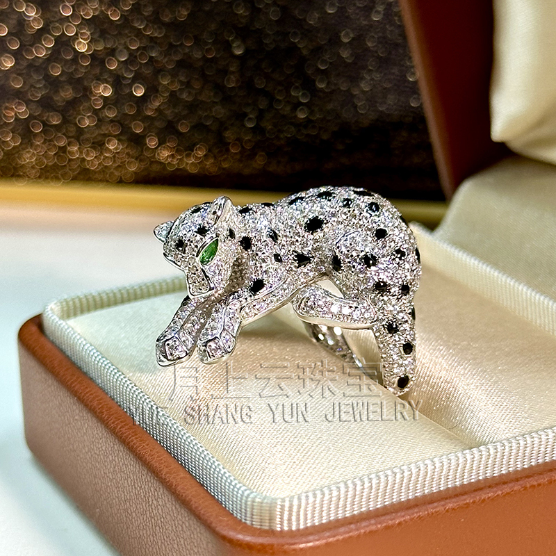 S925 sterling silver leopard ring exaggerated cheetah fortune ring personality light luxury domineering high-end European and American style women's ring