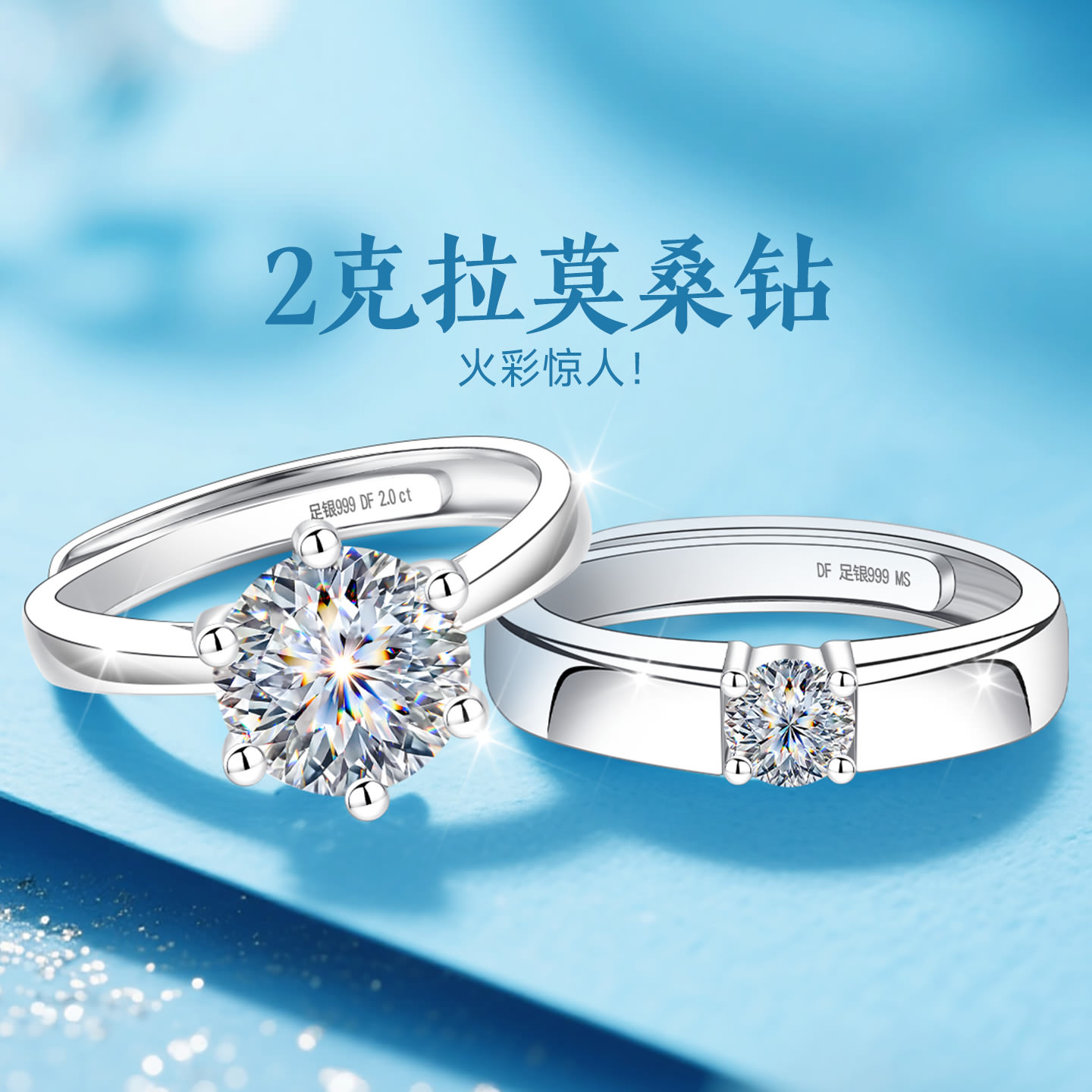 Silver ring couple ring couple pair S999 sterling silver 2 carat 2 carat moissanite moissanite diamond ring