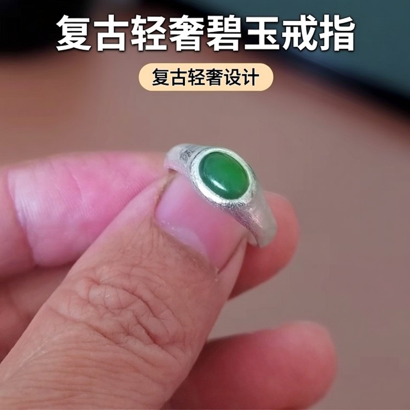 Natural jasper cabochon silver 999 vintage light luxury hand-set custom brushed ring