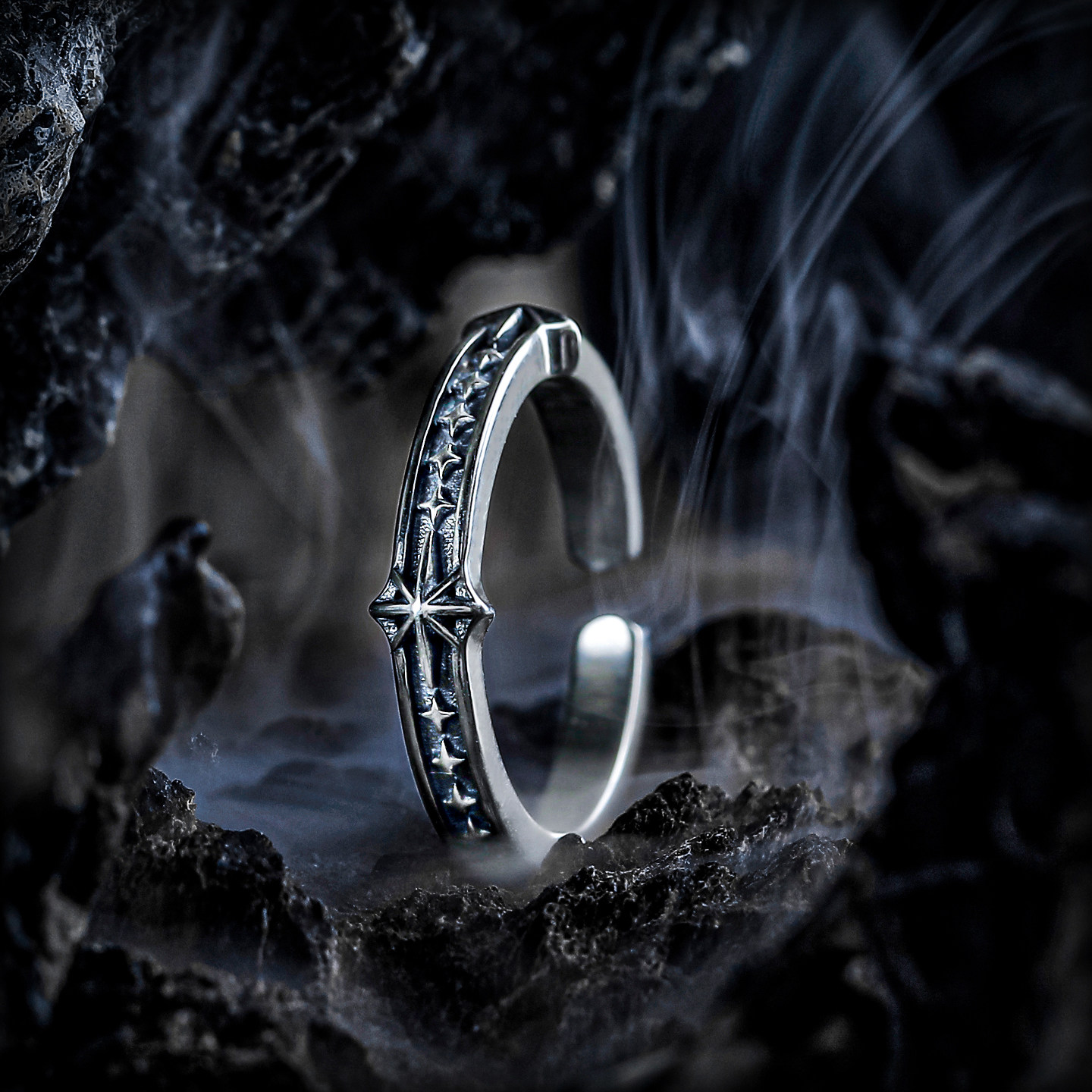 GUXI [Xinghuan] Dark Wind Niche 925 Silver Ring Men's High-end Starlight Opening Ring Simple Jewelry