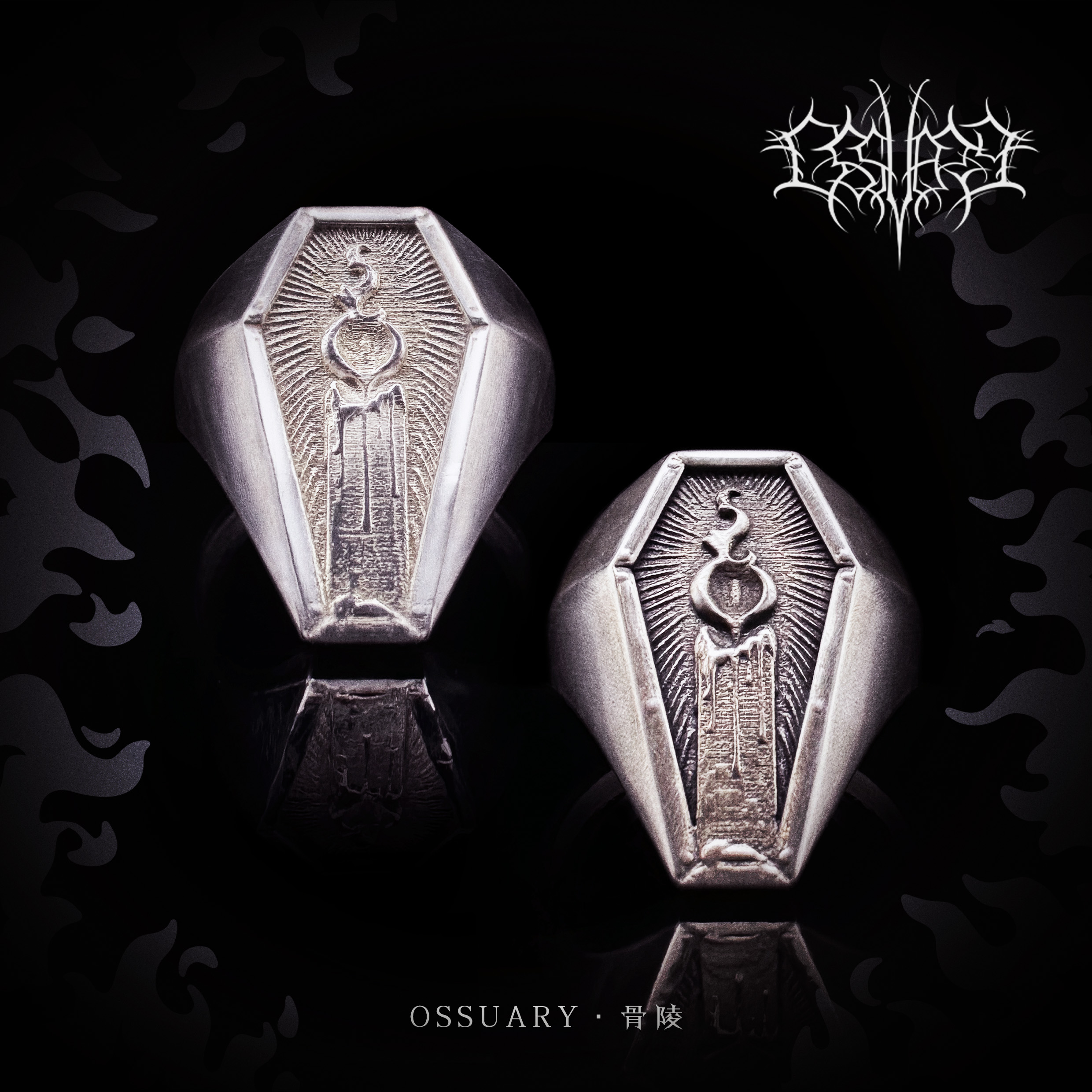Ossuary "sacrifice" coffin ring gothic distressed 925 silver dark wind opening ring bone tomb original design