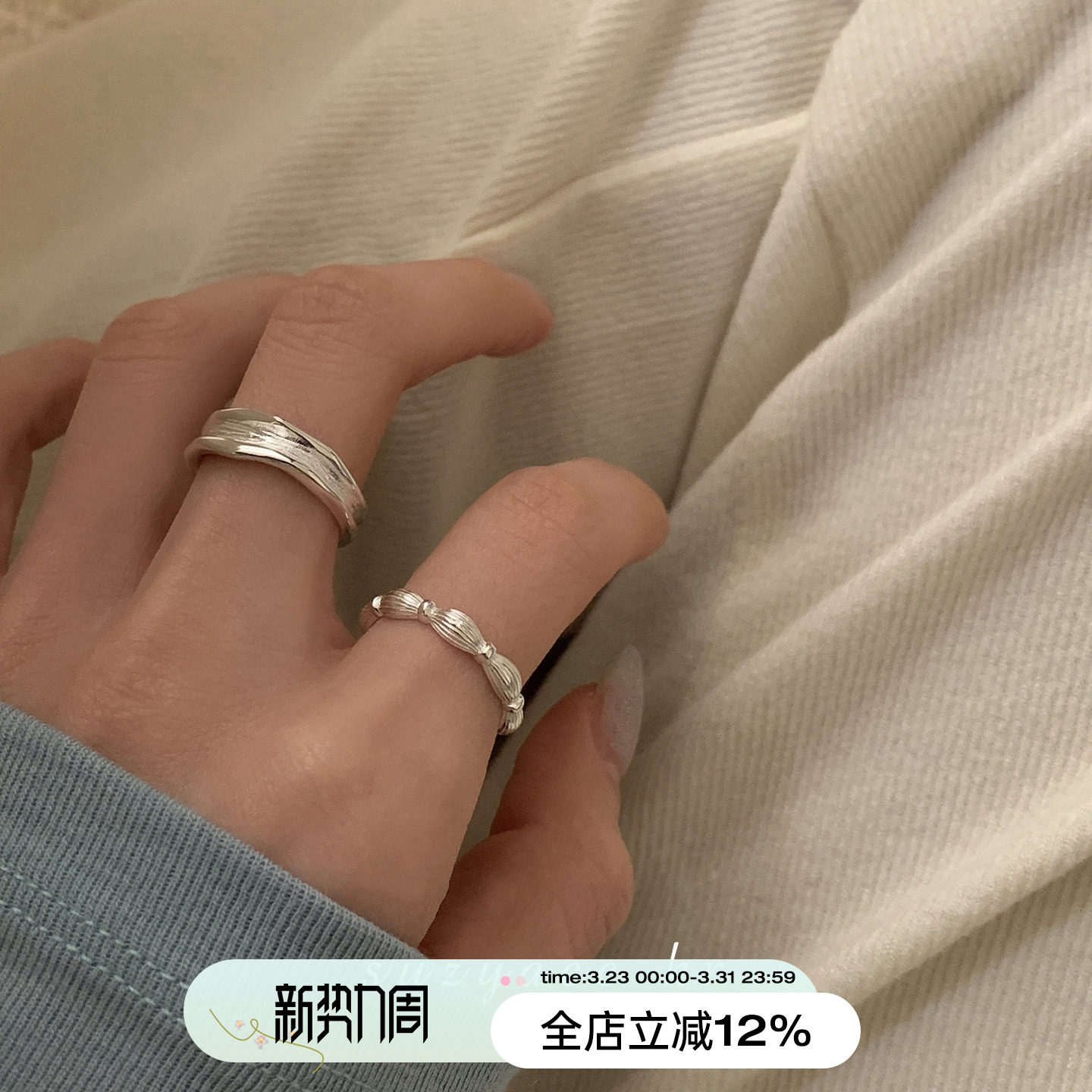 suzyacc kr niche design texture sterling silver ring women's simple light luxury high-end index ring adjustable
