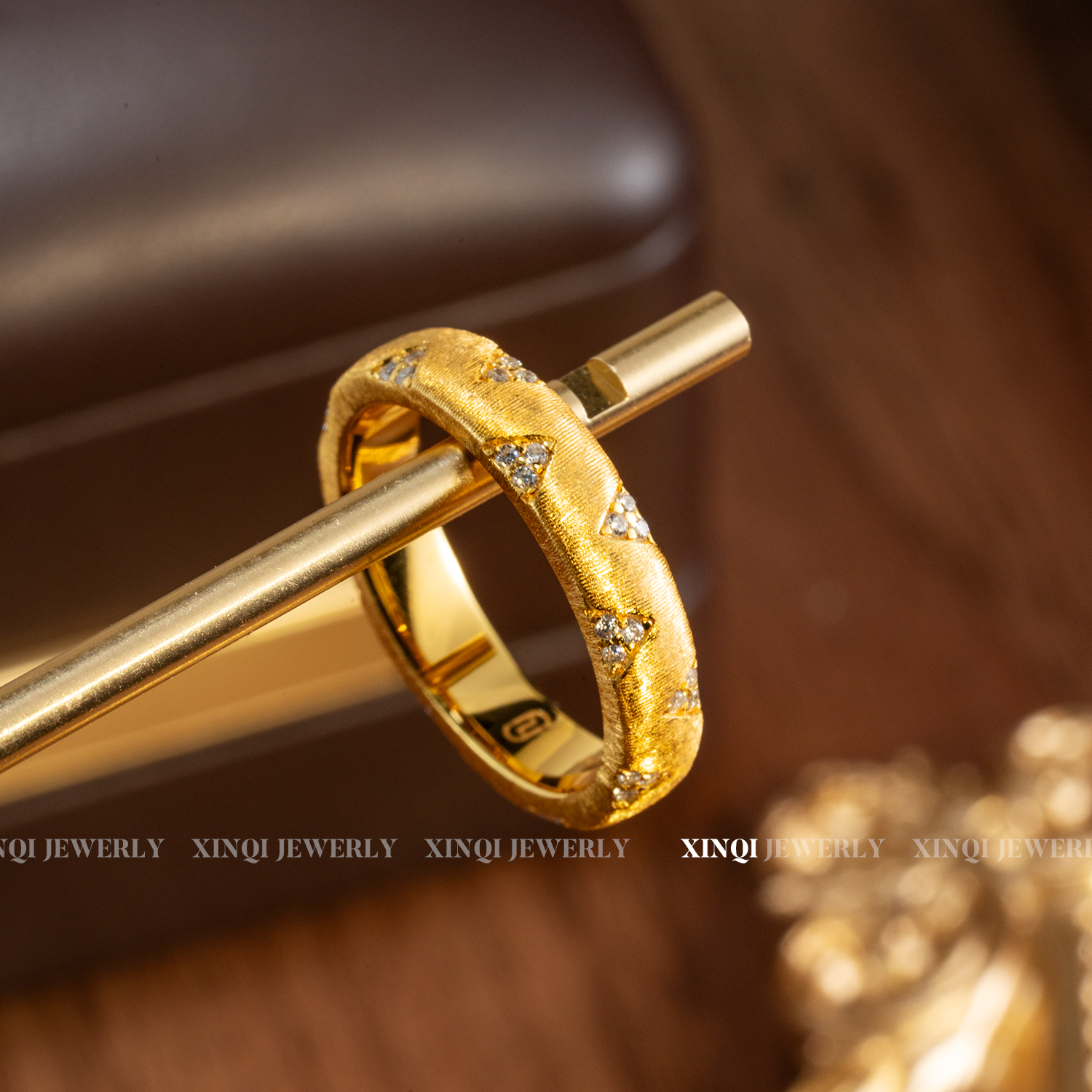 XINQI original Seiko full diamond triangular tower silver plated 18K gold ring hand-brushed electric diamond design jewelry