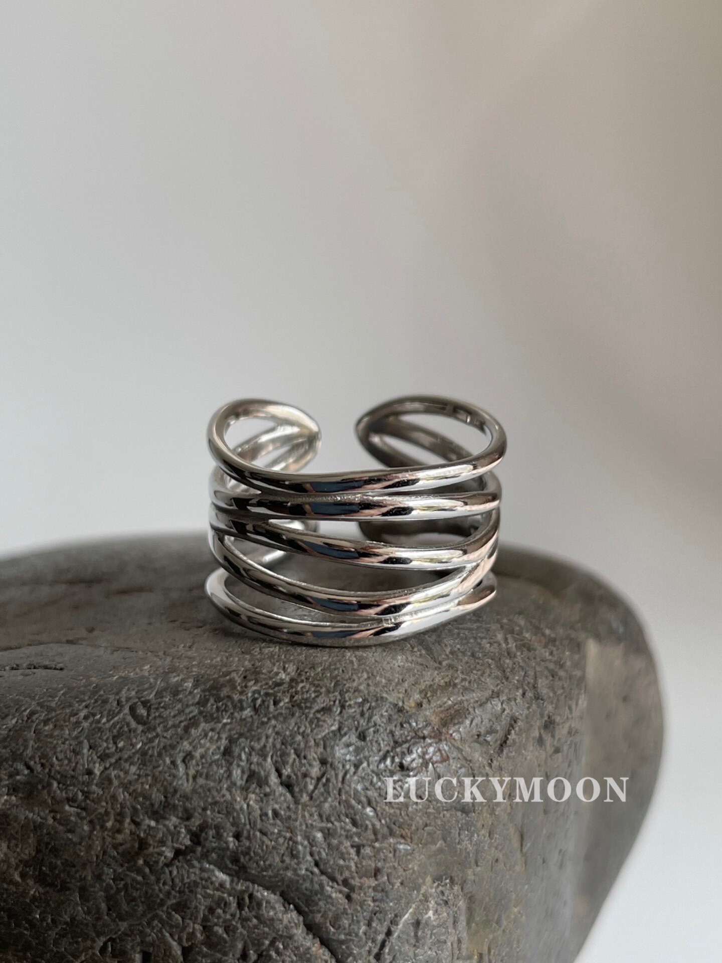 LUCKYMOON Irregular Multi-Line Ring S925 All-Over Sterling Silver Opening Adjustable R061