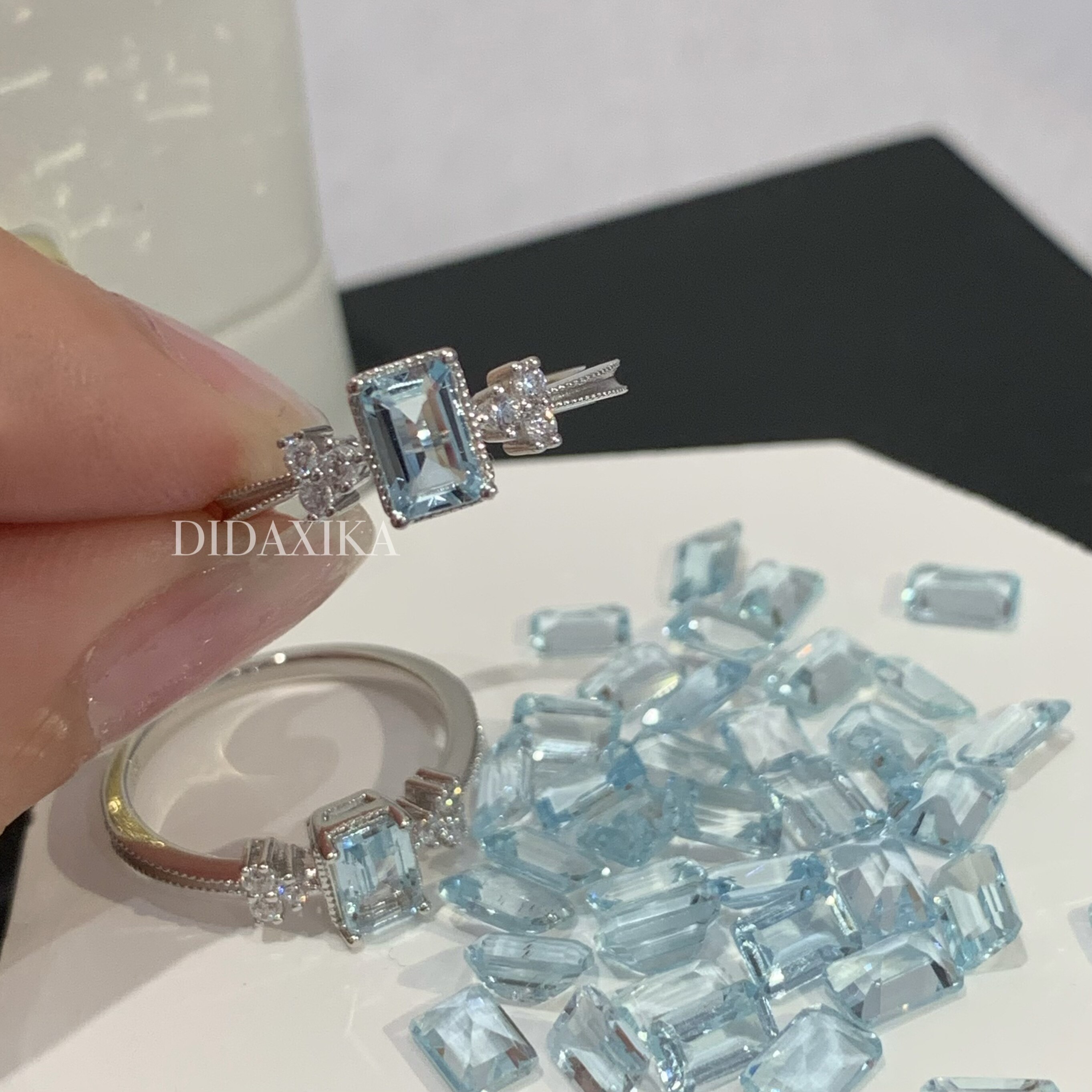 Square aquamarine ring simple light luxury closed-mouth ring niche design 925 sterling silver