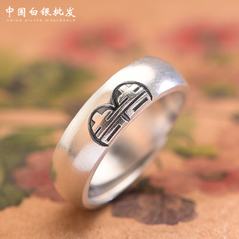 999 sterling silver couple ring pair happy word swastika simple personality opening ring men's and women's commemorative gift