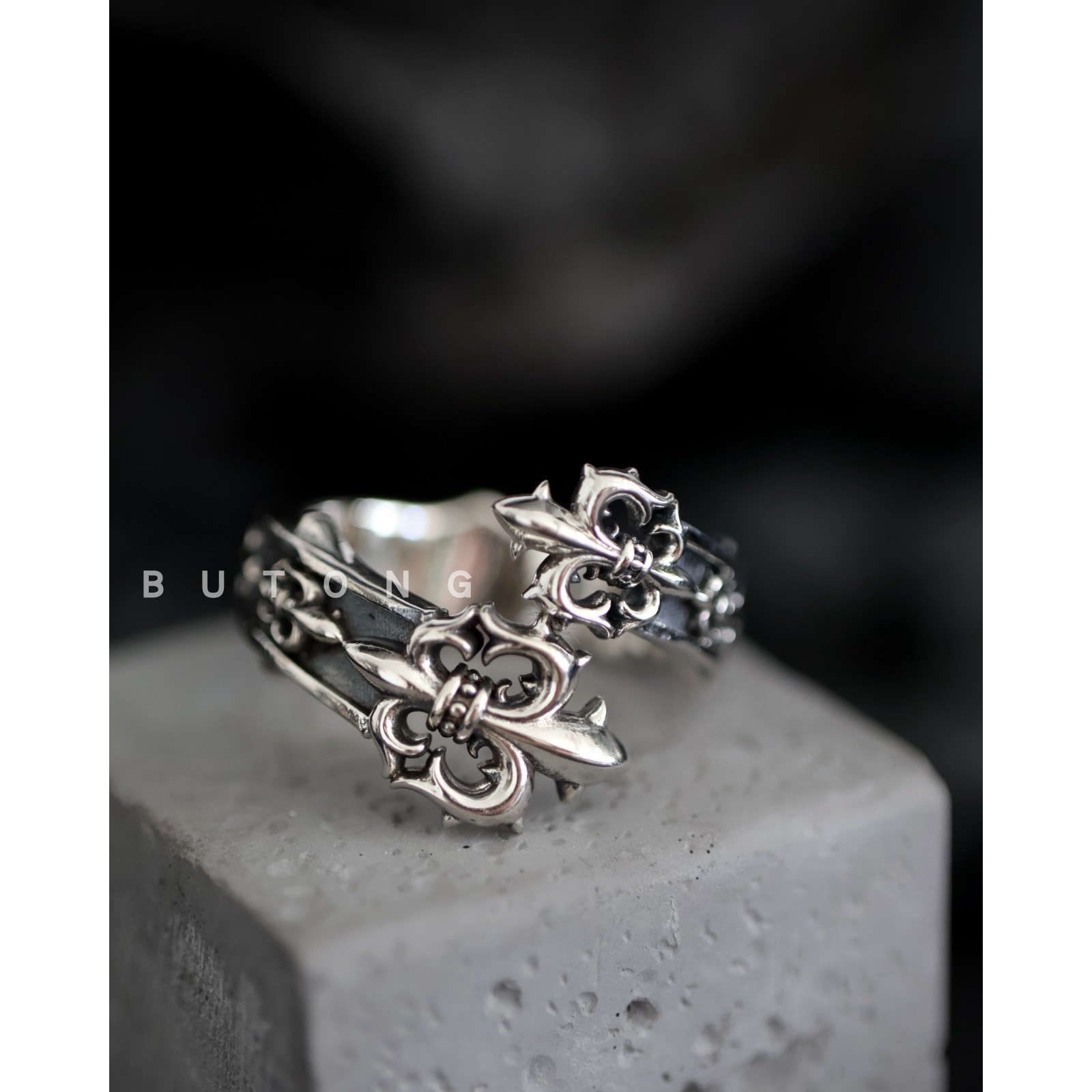 Different silversmiths European and American vintage 925 sterling silver double anchor staggered opening ring hip hop personality couple silver ring