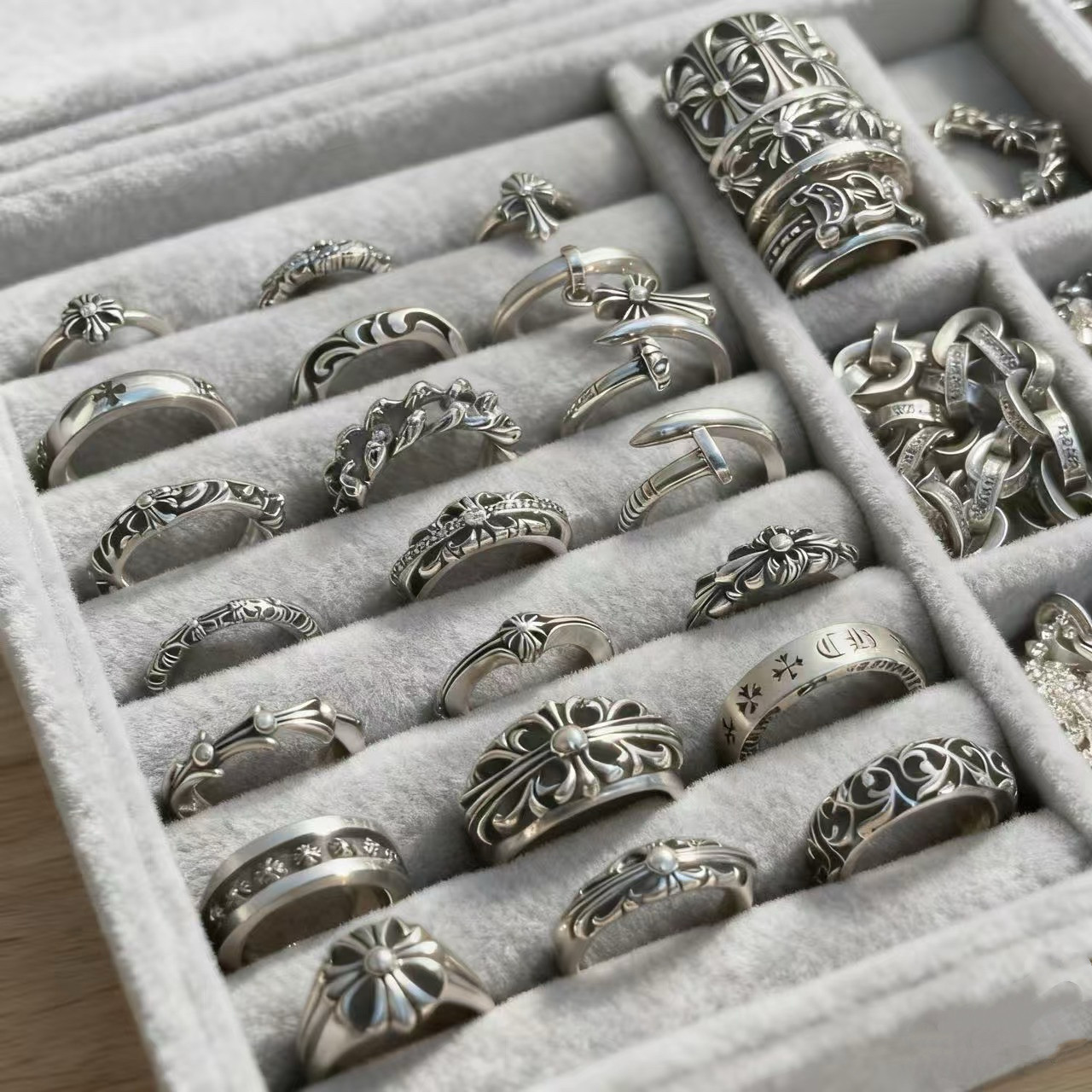 New Year's gift unisex vintage distressed handmade inlaid zircon ring S925 all-over sterling silver R301
