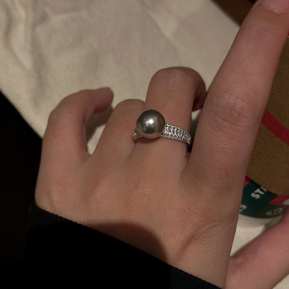 Floating Light S925 silver high-quality real hemp color Shijia pearl glitter diamond wide-brim versatile adjustable ring