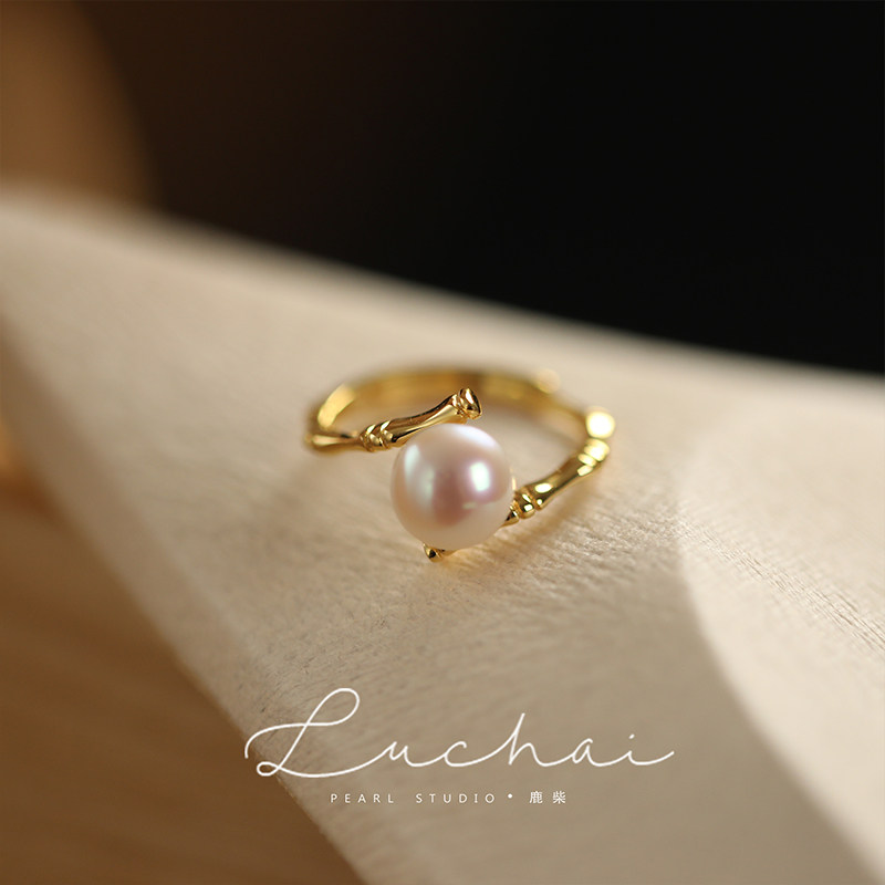 S925 sterling silver pearl ring female niche design opening index ring light luxury luxury fashion personality ring trend