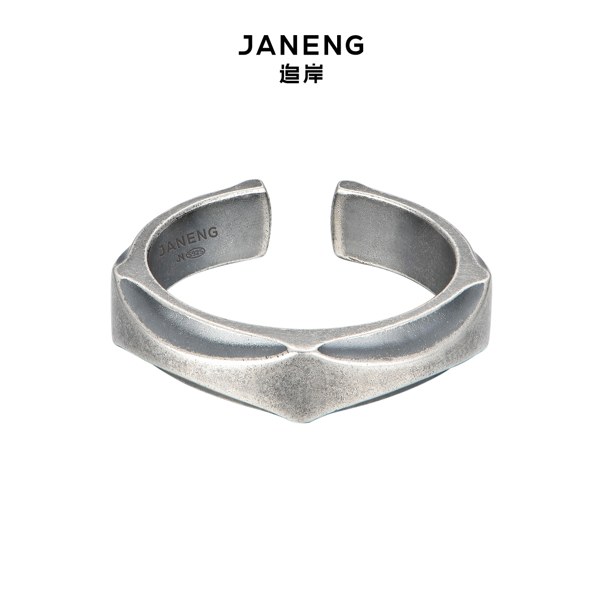 JANENG 925 Silver Star Thorn Shape Opening Ring Unisex Vintage Wasteland Style Adjustable Ring