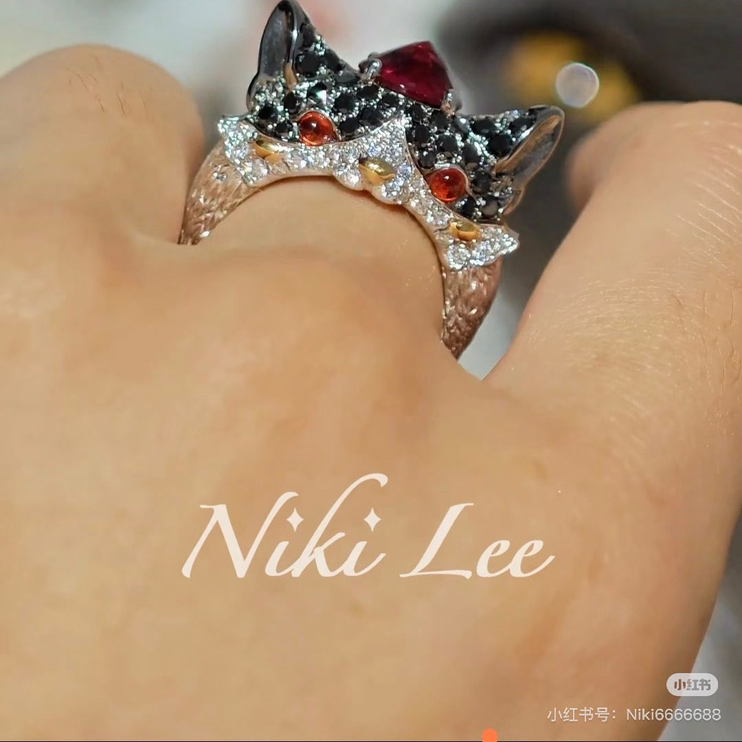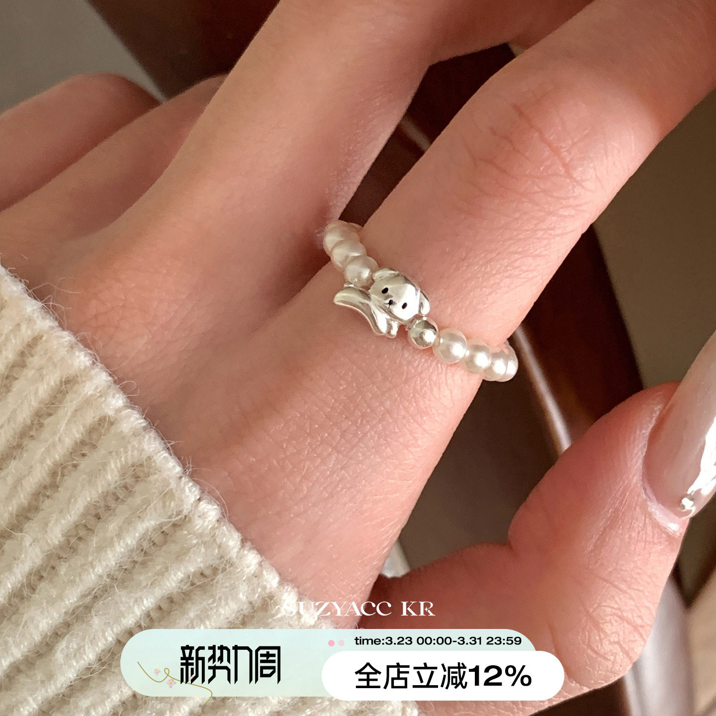suzyacc kr niche design sterling silver puppy imitation pearl bungee cord ring cute simple and versatile index finger ring