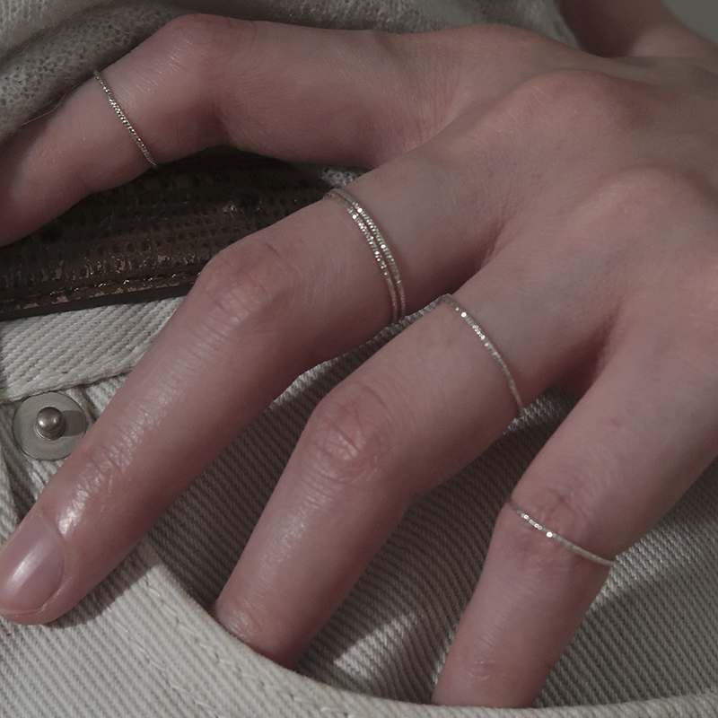 LL2 ACCESSORIES925 silver versatile fine glitter texture ultra-fine circle ring combination stacking set