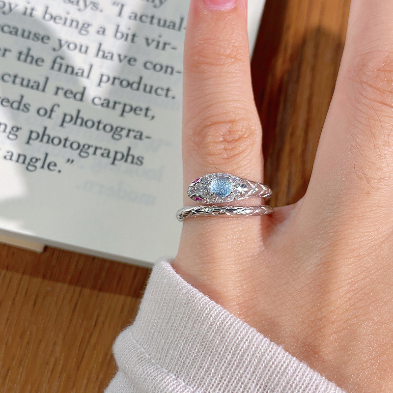 Tildor light luxury spirit snake ring blue water jade serpentine snake bone sterling silver tail ring female pinky small size men's 2