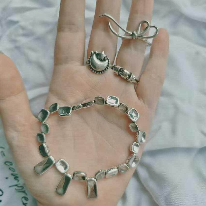 S925 sterling silver bow streamer ring female niche design sense high-end heavy industry silver plate produced broken silver bracelet