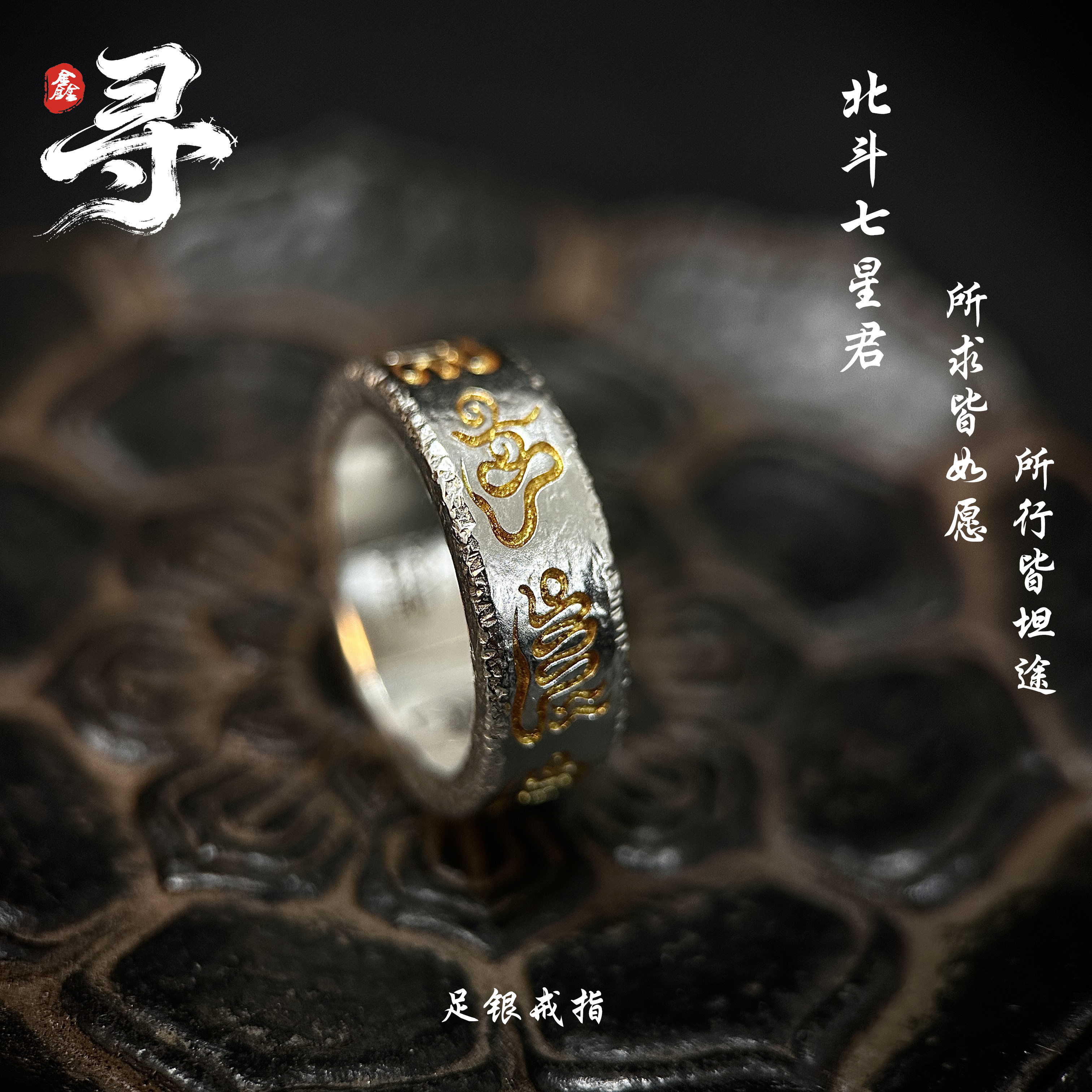 Xunxin silver jewelry Taoist system|Big Dipper Seven Stars Monarch Foot Silver Ring Marshal Guan Yu Sterling Silver 999 Handmade Niche Ring