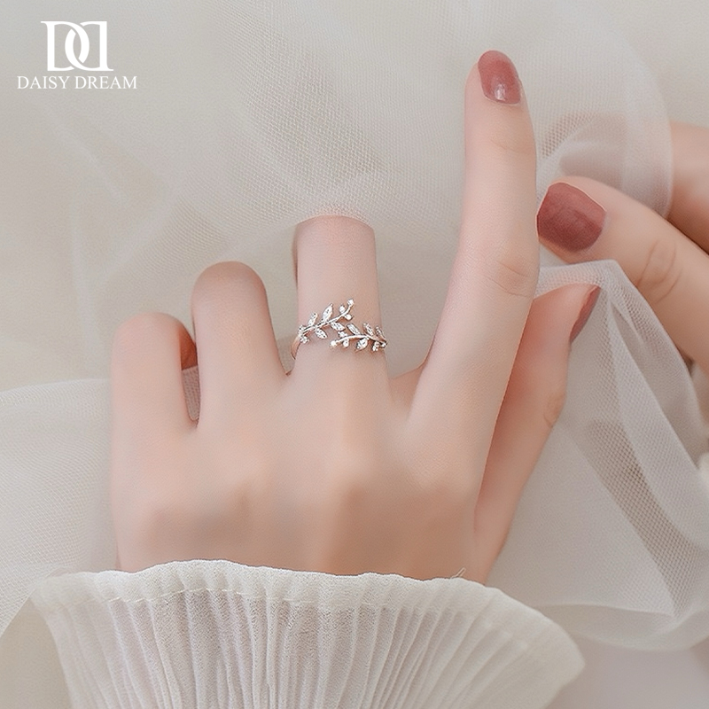 925 sterling silver diamond leaf ring women's fresh and fashionable personality index finger ring light luxury luxury high-end opening ring