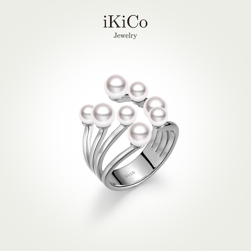 iKiCo fireworks pearl ring, light luxury, niche high-end opening, layered women's 925 silver gift, 25 spring and summer new model